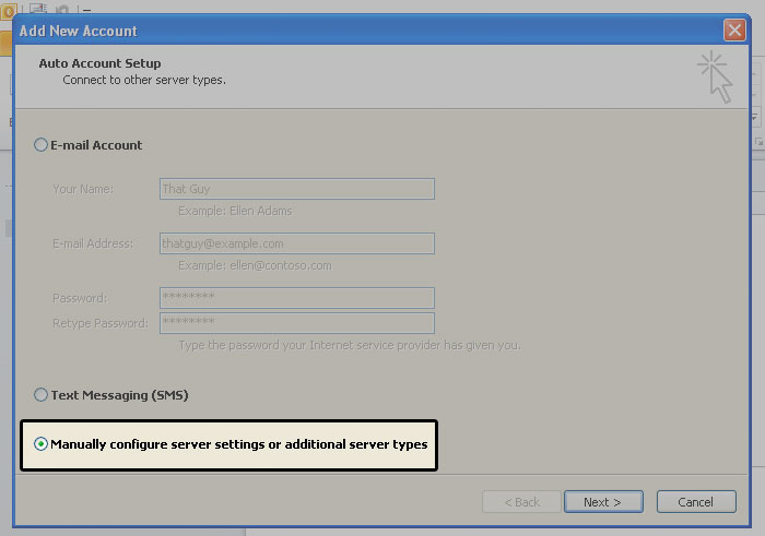 3. Next, select Manually configure server settings or additional server types, then click Next. See Figure 2 below.