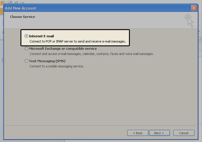 4. In this screen, choose Internet E-mail, then click Next. Figure 3 below illustrates this window.